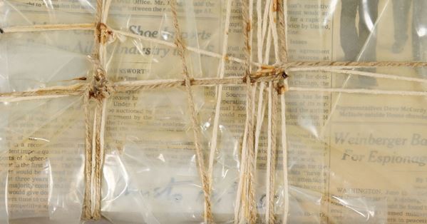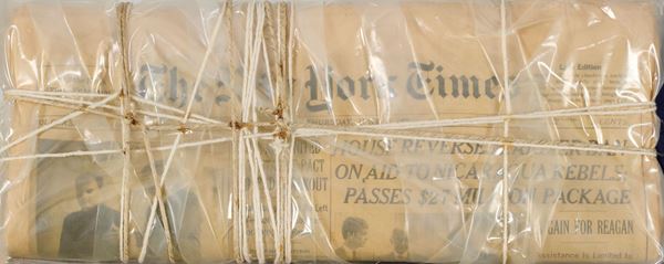 New York Times piegato ed impacchettato nel polietilene con spagoDimensioni: