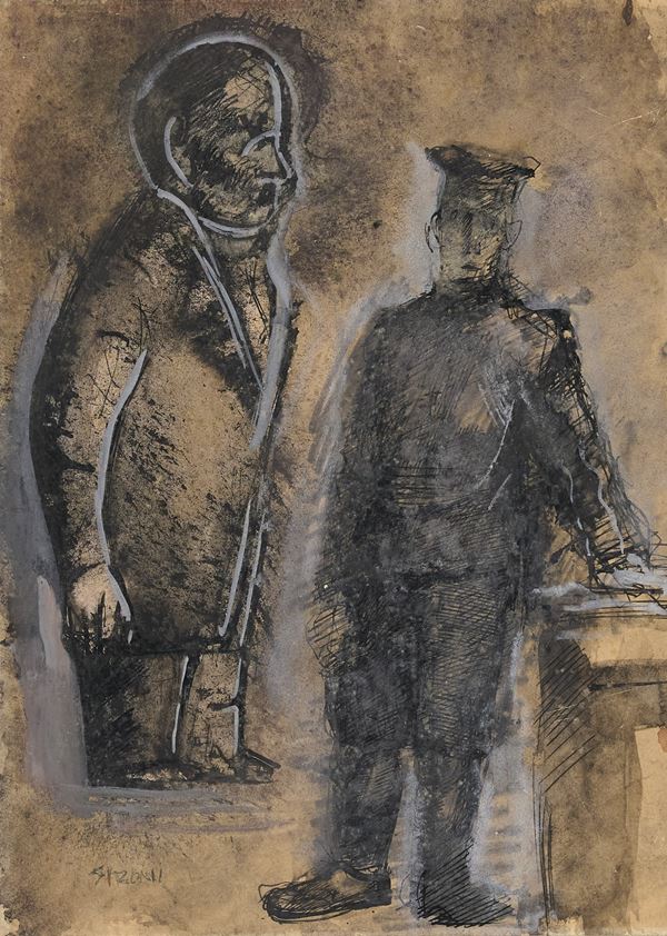 Autentica dell'Archivio "Mario Sironi", a cura della Dott.ssa Romana Sironi, su foto, con timbro "Archivio Mario Sironi" ed Archivio n° 15/3.Provenienza: