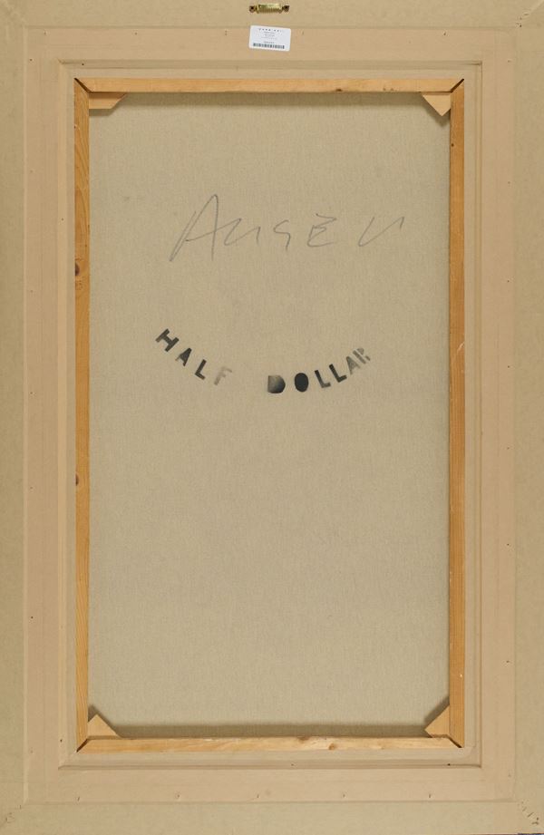 cm. 100x60Sul verso: firma e stencil "Half Dollar".