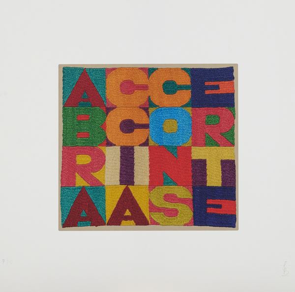 cm. 50x50Timbro a secco fondazione " Alighiero Boetti " e sigla " Giordano Boetti " in basso a destra, tiratura in basso a sinistra.