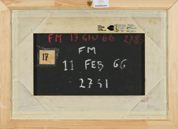 cm. 27,5x45,5Sul verso: sigle, data ed etichetta "Galleria d'arte Borgogna", Milano, con descrizione.