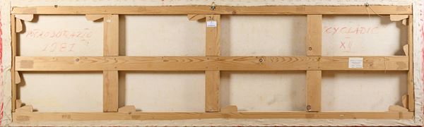 cm. 70x250Sul verso: firma, data, titolo ed etichetta Assessorato della cultura Mostra Antologica, comune di Trissino, agosto - settembre 1981.