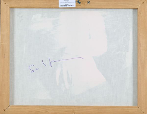 Autentica dell'Archivio Mario Schifano, a cura di Monica Schifano con foto ed archivio n° 06603250125, in data 27 gennaio 2025.Autentica dell'Artista su foto con timbro "Galleria San Giorgio", Ferrara.