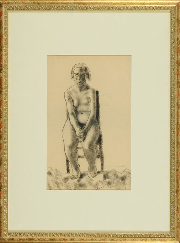 Sul verso: scritto di autenticità dell'Artista e timbro Galleria "La Bussola", Torino.