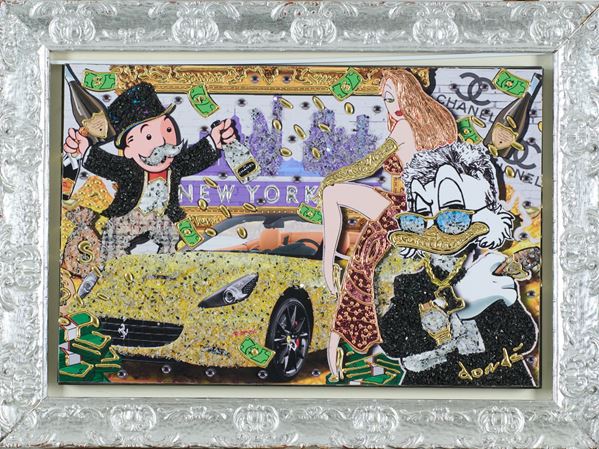 Tecnica mista su tela computerizzata con applicazionidi resine e vetri.Dimensioni: