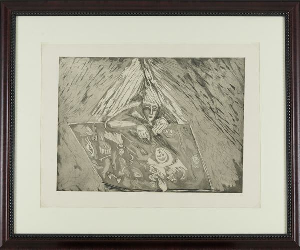 cm. 59x78,5Firma e data in basso a destra, tiratura e timbro a secco Stamperia Artistica Il Torchio in basso a sinistra.