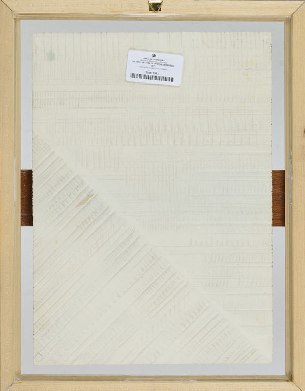 Bibliografia: "Arnaldo Pomodoro - Opera grafica, Progetti visionari, Sculture", Edizione Electa, pag. 48."Arnaldo Pomodoro - Impressioni", 2RC editrice, tav. 4.