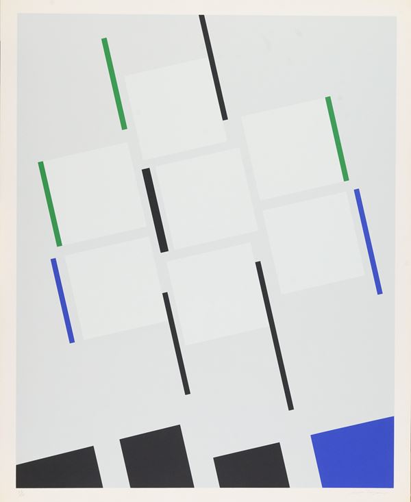 Cartella contenente 10 serigrafie su carta fabriano di cm. 61x74,5 su progetti dal 1935 al 1975.Tutte le opere sono firmate in basso a destra e tirate in basso a sinistra.