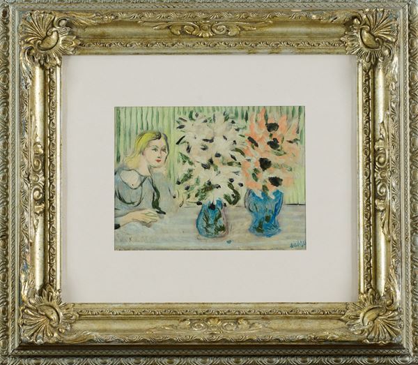Figura con vasi di fiori