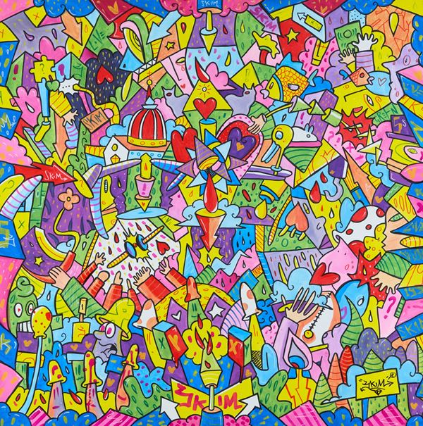 cm. 100x100x3,5Firmato in alto al centro e in basso a destra.