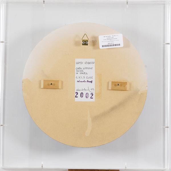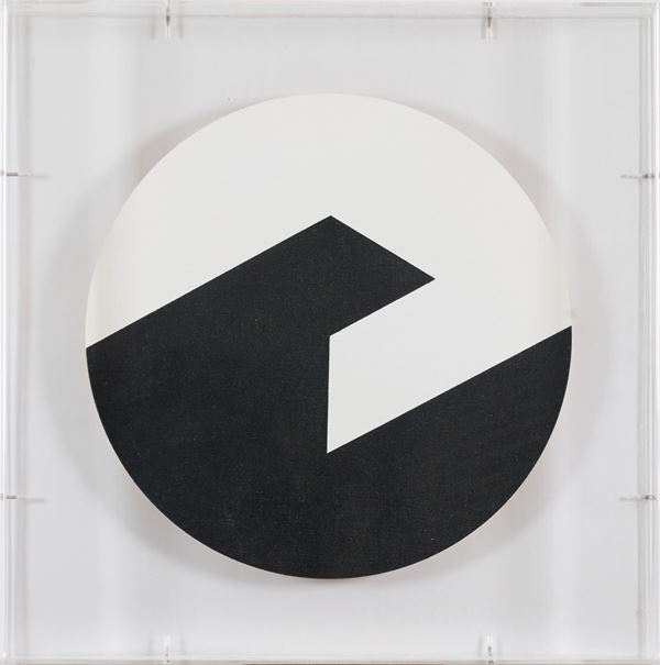 diam. cm. 30, in teca di plexiglas di cm. 40x40x6Sul verso: etichetta dell'Artista con firme, data, titolo.