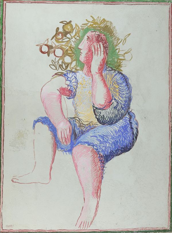 - " Riposo ", Affresco su tela, cm. 160x120, firmato in basso a sinistra, sul verso: firma e titolo.