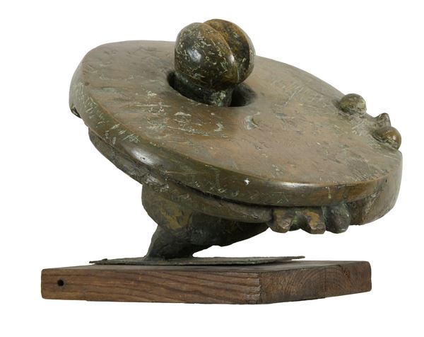 Scultura in bronzo cm. 35x44x45 su base di legno diDimensioni: