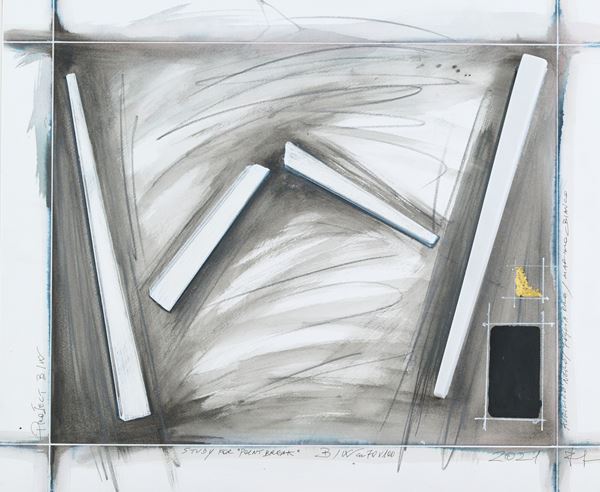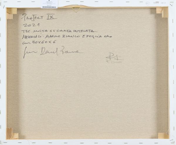 Tecnica mista, marmo bianco e foglio oro su carta intelataDimensioni: