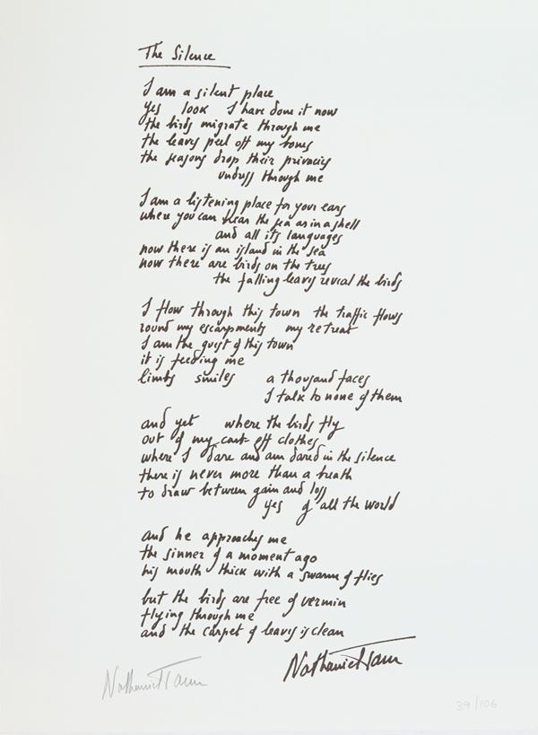 La cartella è corredata di una poesia di Nathaniel Tarn.