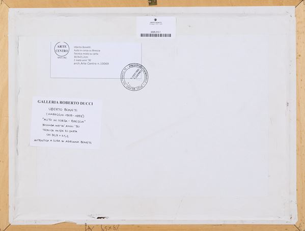 Sul verso: etichetta Arte Centro, Milano, con descrizione e timbro.