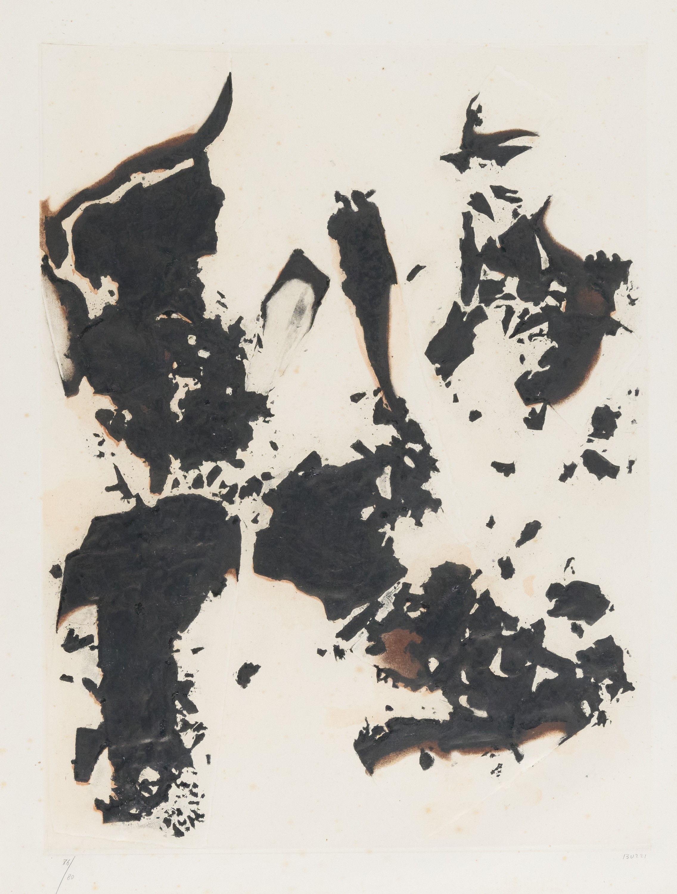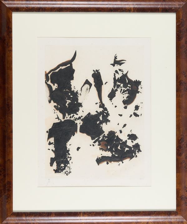 Bibliografia: "Alberto Burri - Catalogo Generale tomo V, opera grafica 1949 - 1994", a cura di Bruno Corà, pubblicato a pag. 43.Da una serie di sei incisioni, tiratura di 80 esemplari in numeri arabi e XI in numeri romani, stamperia 2RC e galleria Marlborough, Roma.