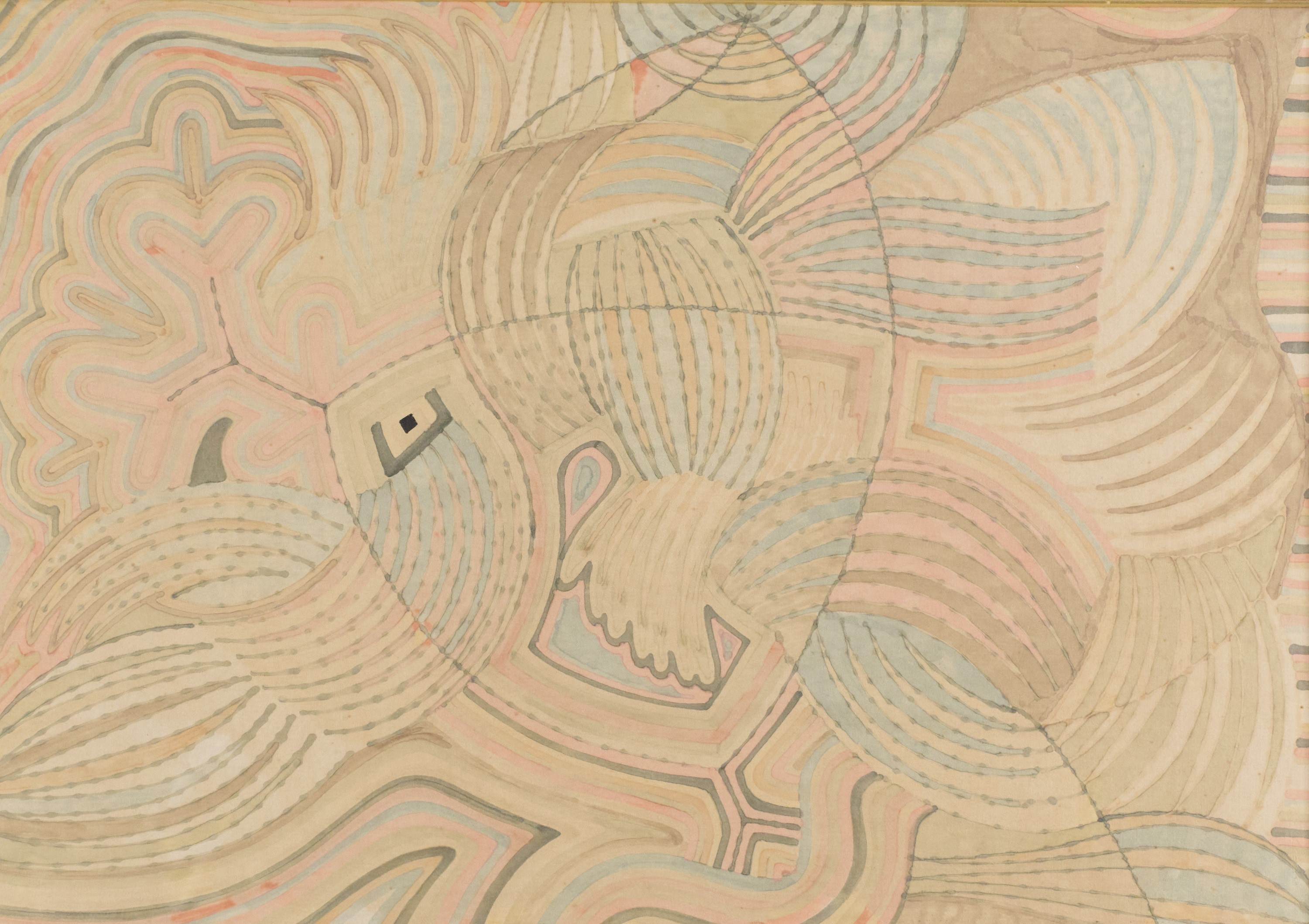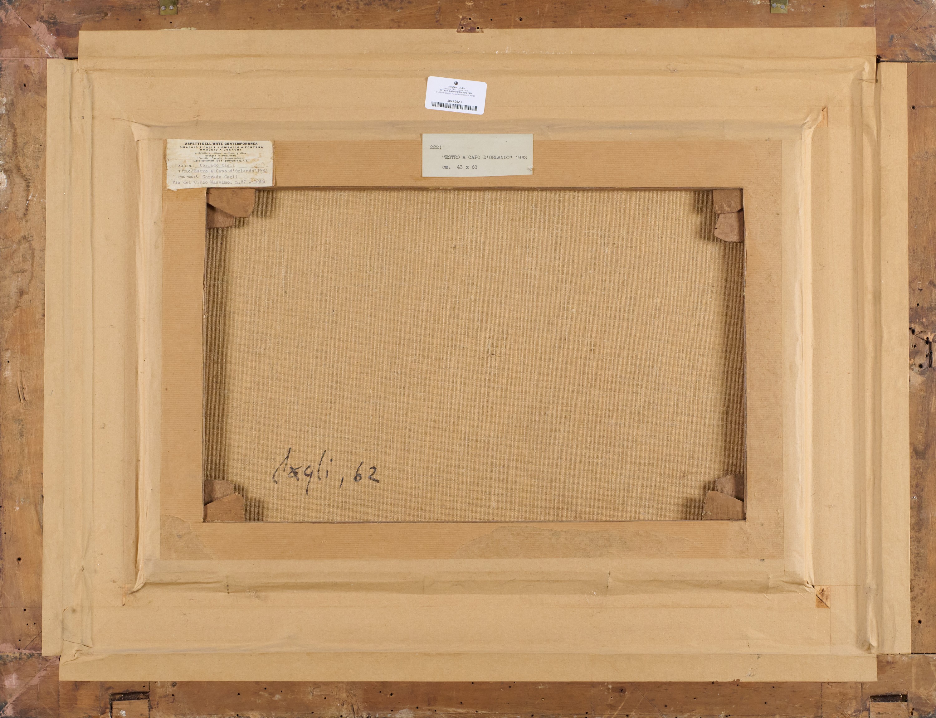 cm. 43x63Sul verso: firma, data ed etichetta "Aspetti dell'Arte Contemporanea - Omaggio a Cagli, omaggio a Fontana, Omaggio a Quaroni",Castello Cinquecentesco l'Aquila, luglio - settembre 1963.