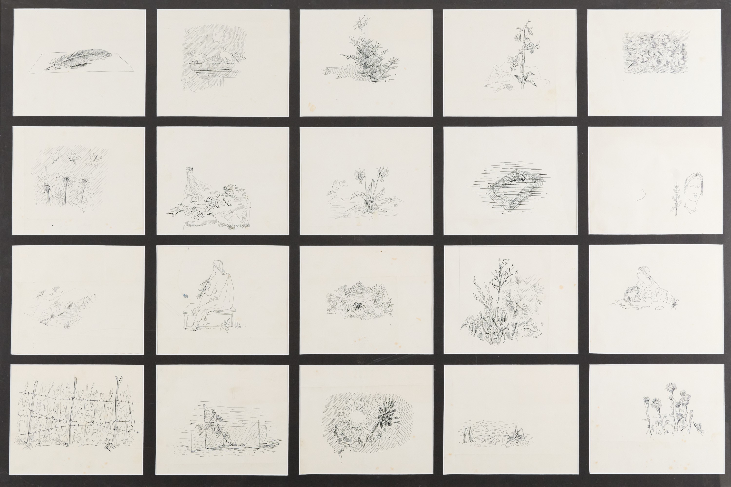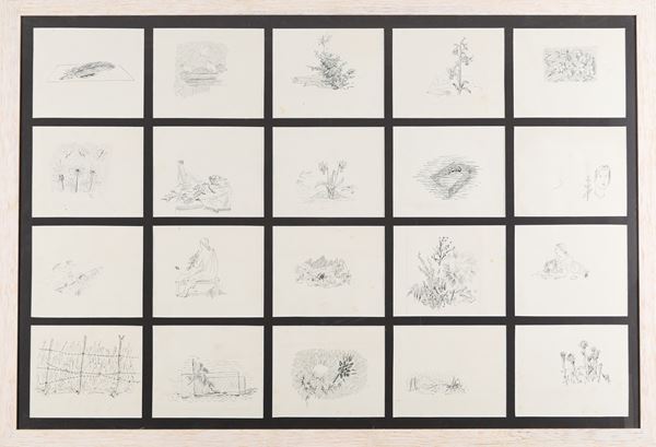 20 chine su carta, ciascuna di cm. 22,8x22,8Sul verso di ogni disegno: etichetta "Collezione Enrico Vallecchi", Firenze.