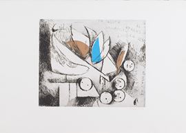 10) Senso Lirico, Puntasecca Acquatinta a 4 colori, Lastra cm 28,5x32. Firma e numerazione "Marino 63/75". Timbro a secco dello stampatore "Il cigno stamperia d'arte".