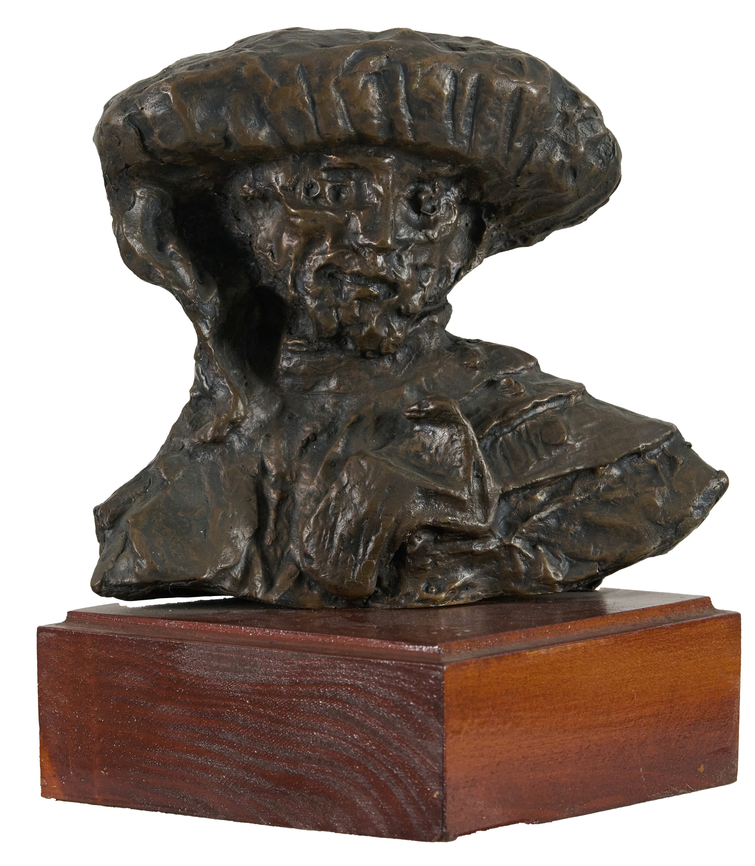 h. cm. 19x22x5 su base di legnoSul verso: firma e tiratura.