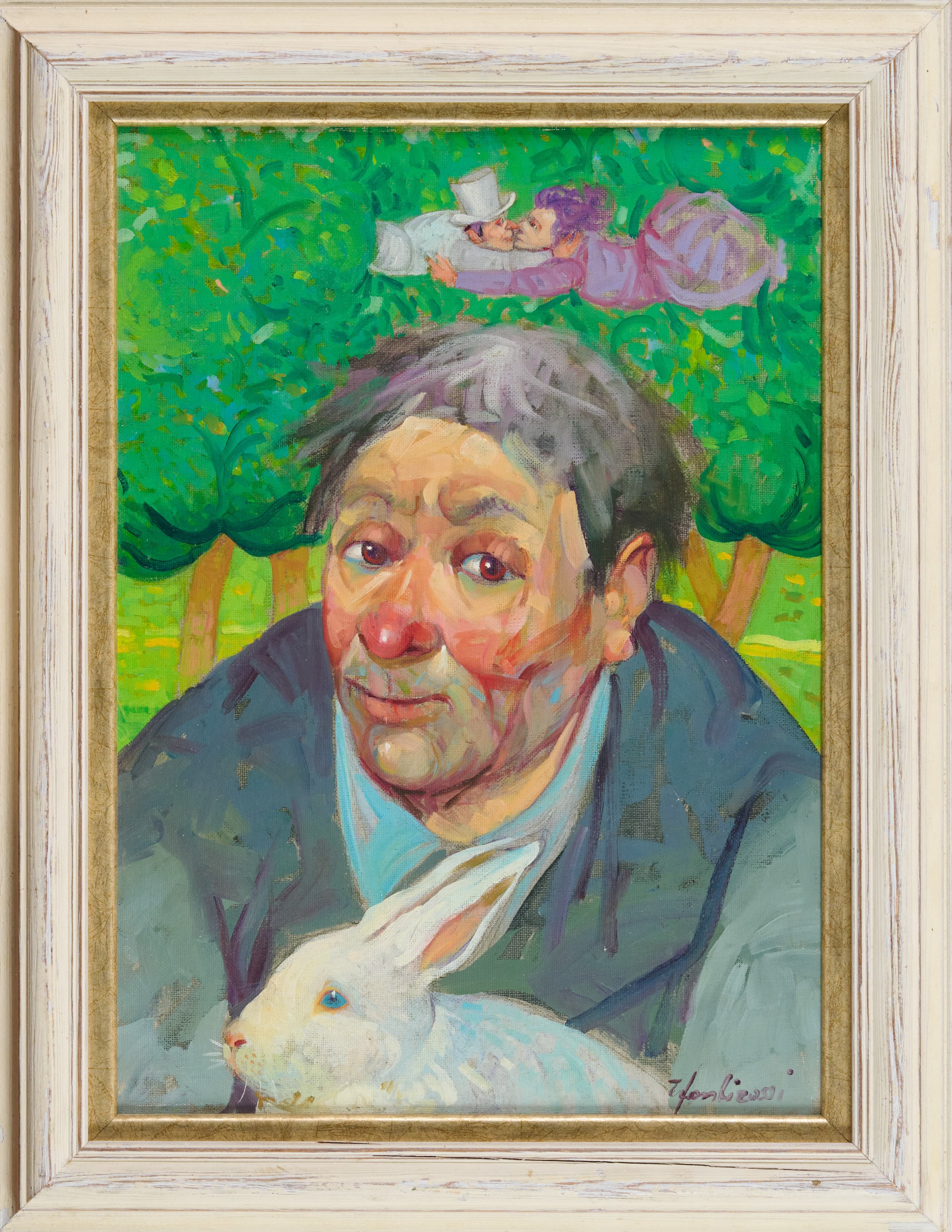 Un contadino con coniglio