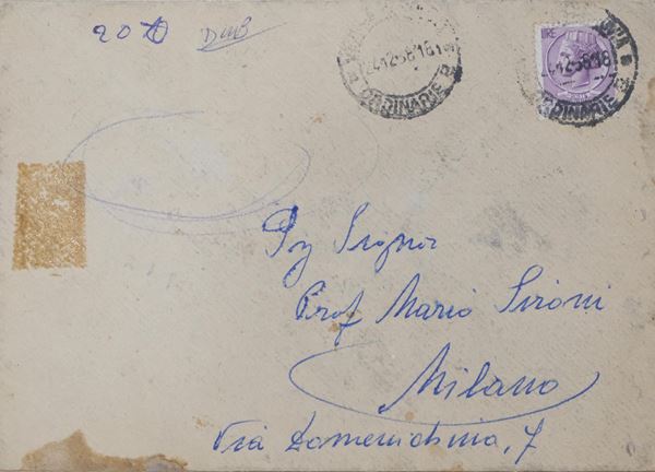 Sul verso: dati dell'Artista, francobolli e indirizzo postale.