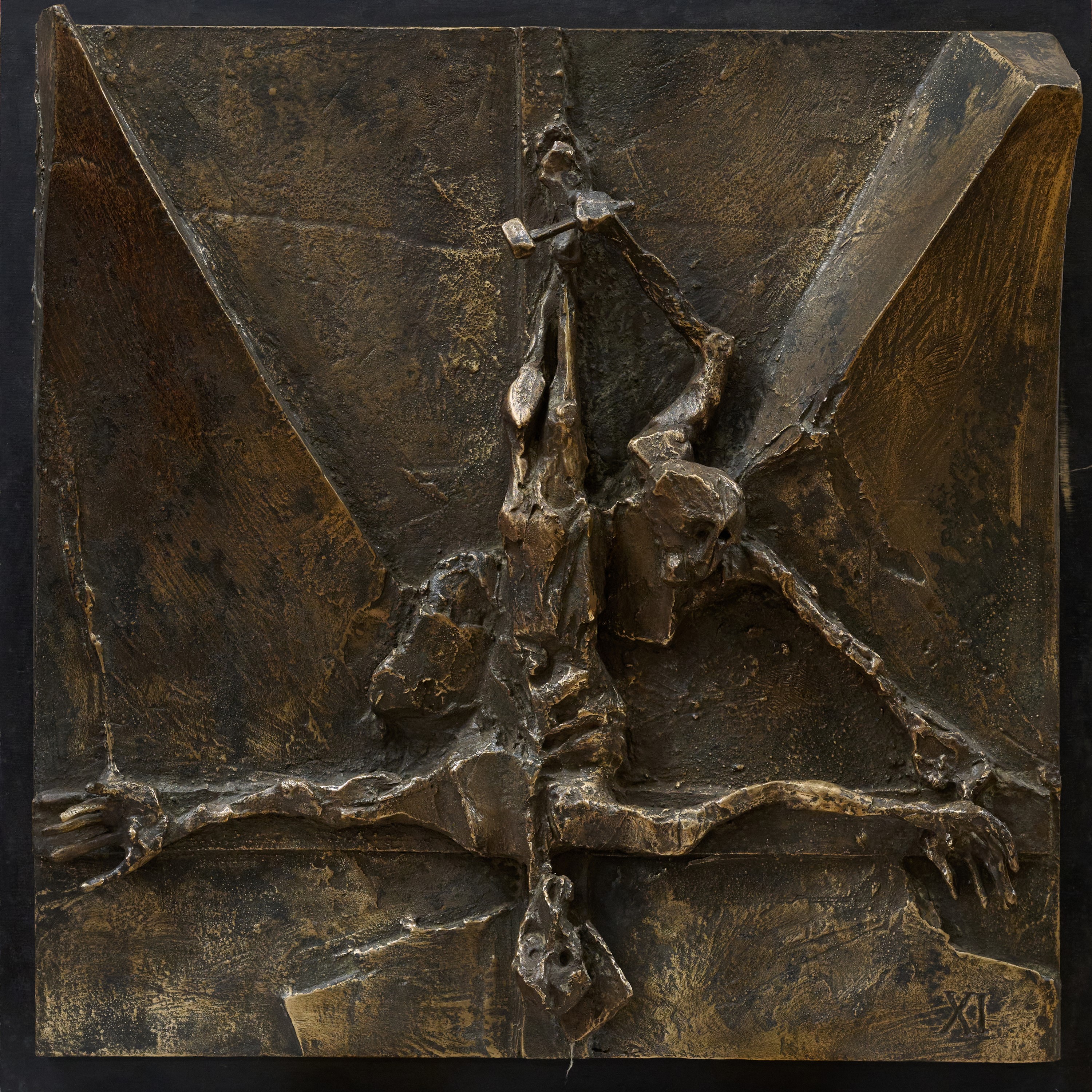 cm. 44x44x10Firma e numerazione in basso a destra.