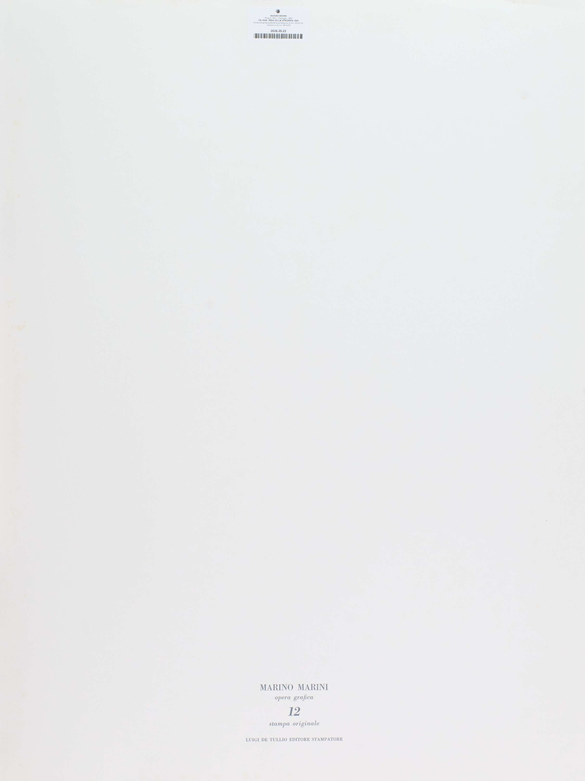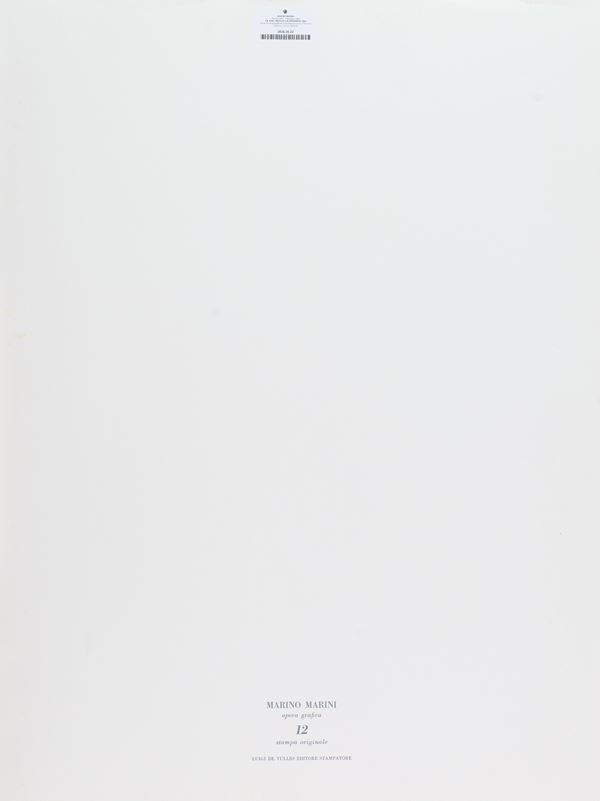 L'opera fa parte della cartella "Marino Marini opera grafica, incisori italiani contemporanei", contenente 20 acqueforti e puntesecche incise dal 1959 al 1971, Luigi De Tullio Editore. Le incisioni impresse su Vélin Cuve BFK Rives Velin D'Arches e carta Tino Magnani, sono custodite singolarmente in 20 passe-partout di cm. 74x54.
