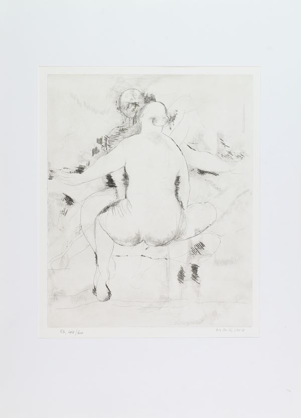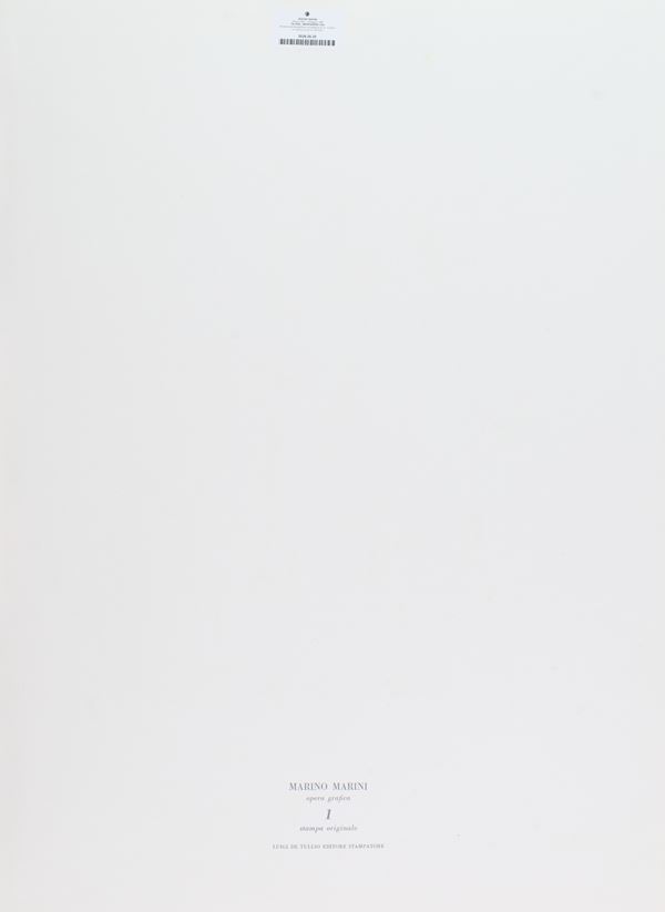 L'opera fa parte della cartella "Marino Marini opera grafica, incisori italiani contemporanei", contenente 20 acqueforti e puntesecche incise dal 1959 al 1971, Luigi De Tullio Editore. Le incisioni impresse su Vélin Cuve BFK Rives Velin D'Arches e carta Tino Magnani, sono custodite singolarmente in 20 passe-partout di cm. 74x54.