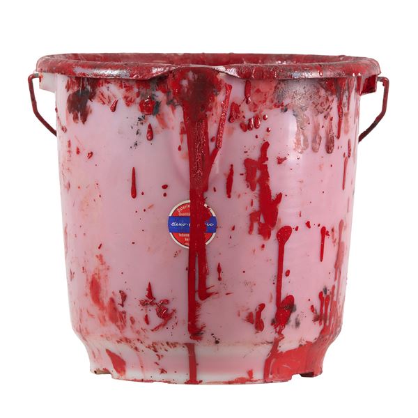 Secchio in plastica di diametro cm. 32 h. cm. 29,5 con pittura e fotografia a colori di cm. 29x20Sotto la base del secchio etichetta dell'editore con tiratura.