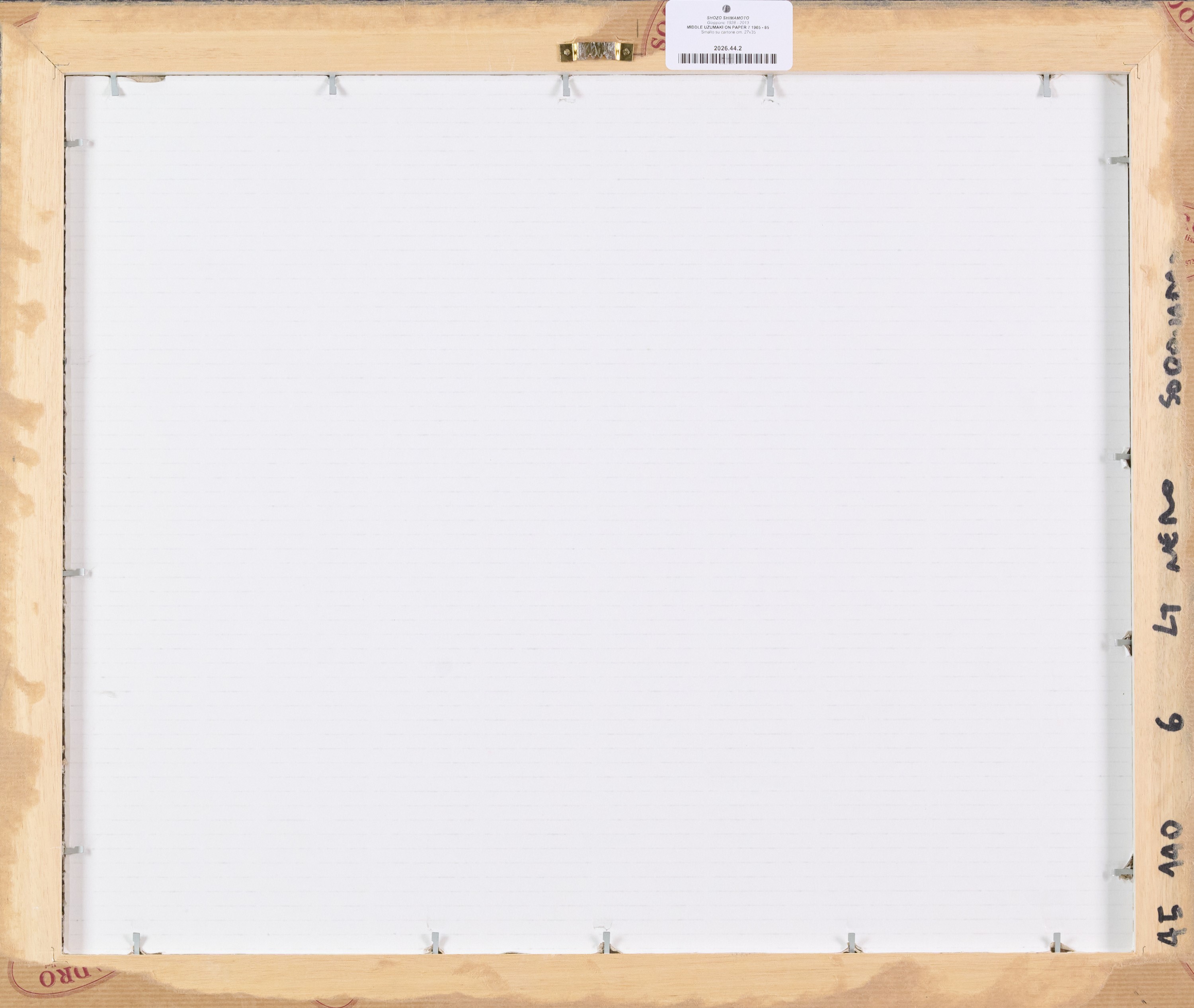 Certificato di autenticità dell'Associazione Shozo Shimamoto con firma dell'Artista, descrizione ed archivio n° 324.Provenienza: