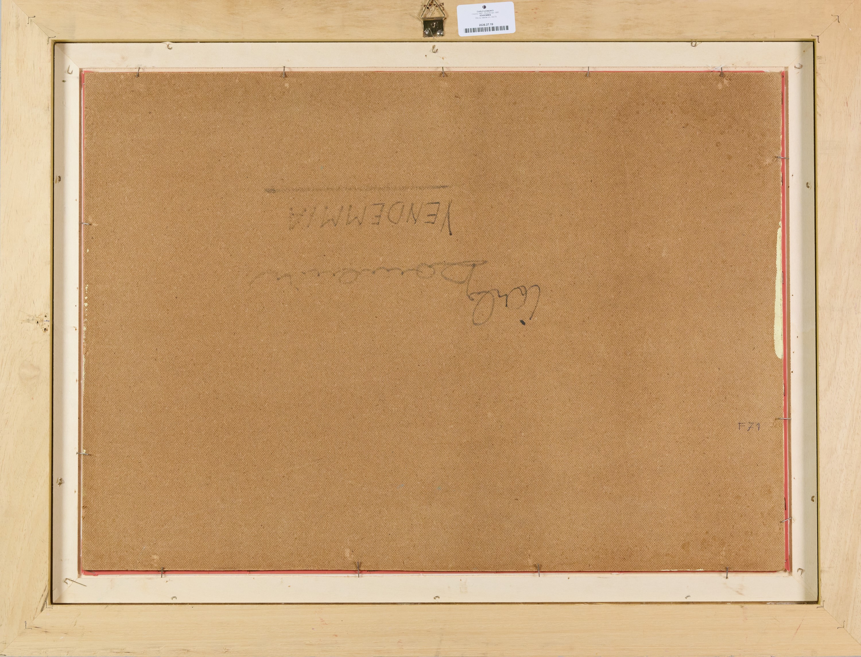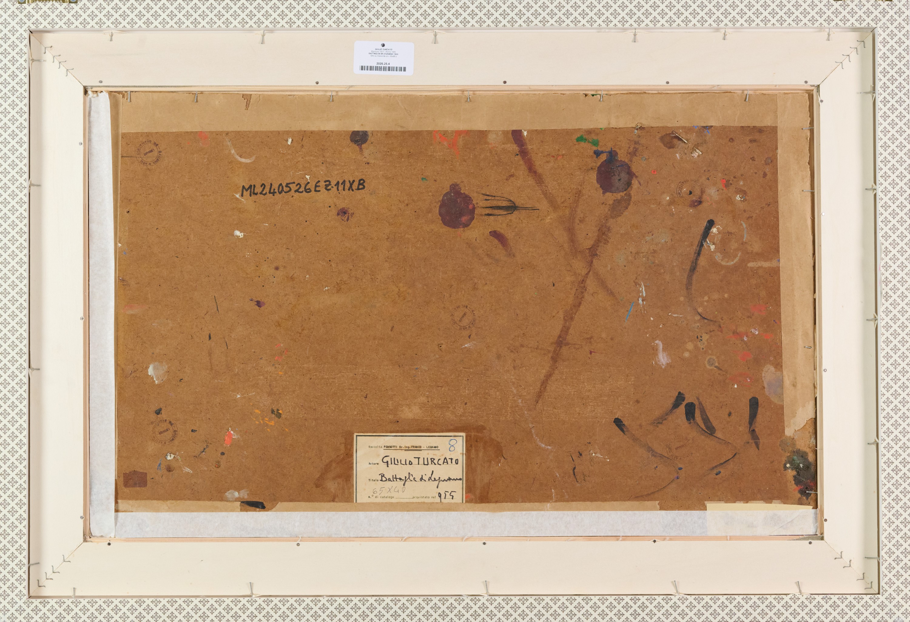 Etichetta con descrizione e timbri "Galleria d'arte Grattacielo".