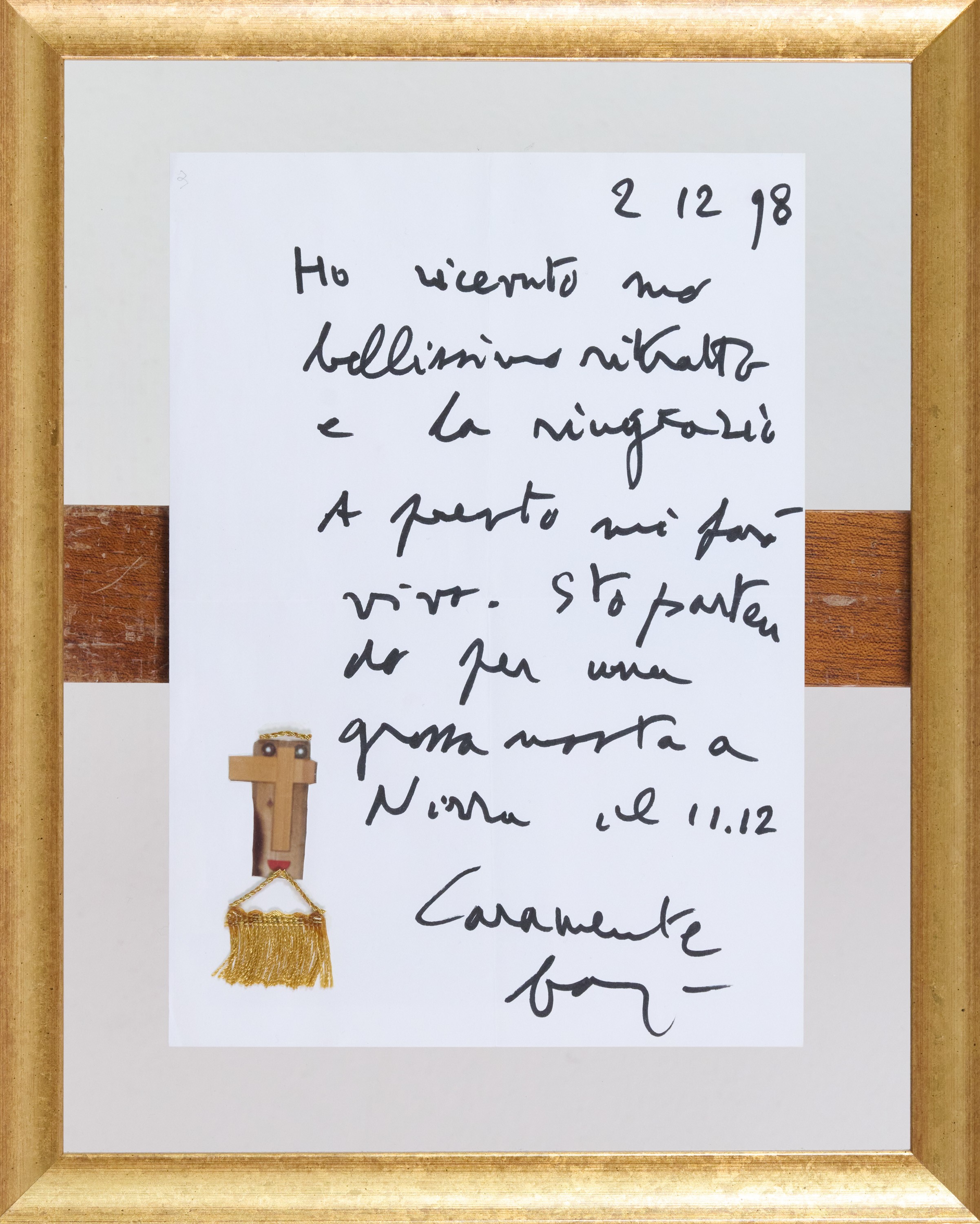 Lettera autografa con collage di passamaneriaDimensioni: