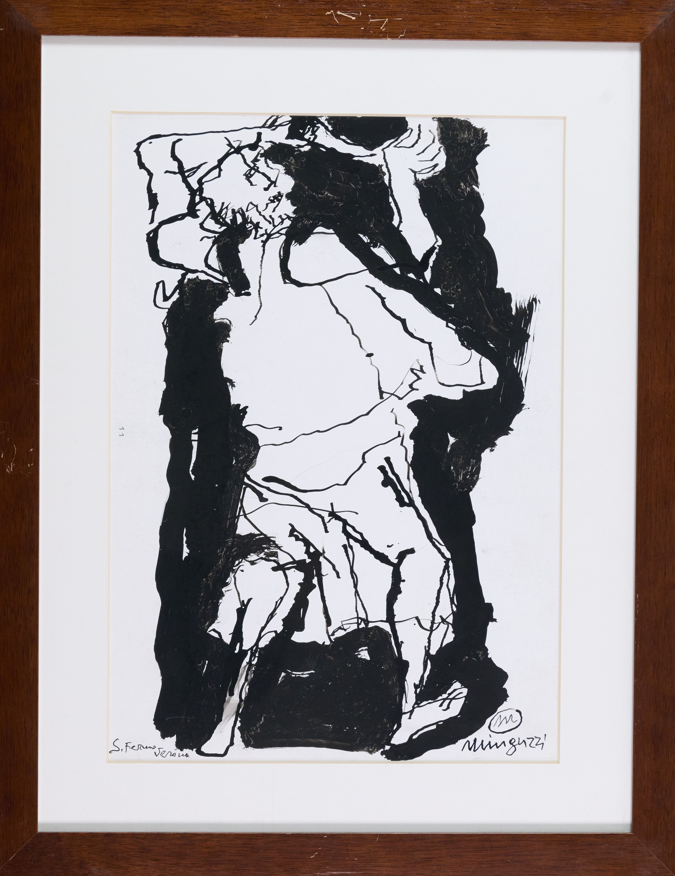 cm. 42x29Firma e sigla in basso a destra, dedica a persona in basso a sinistra.